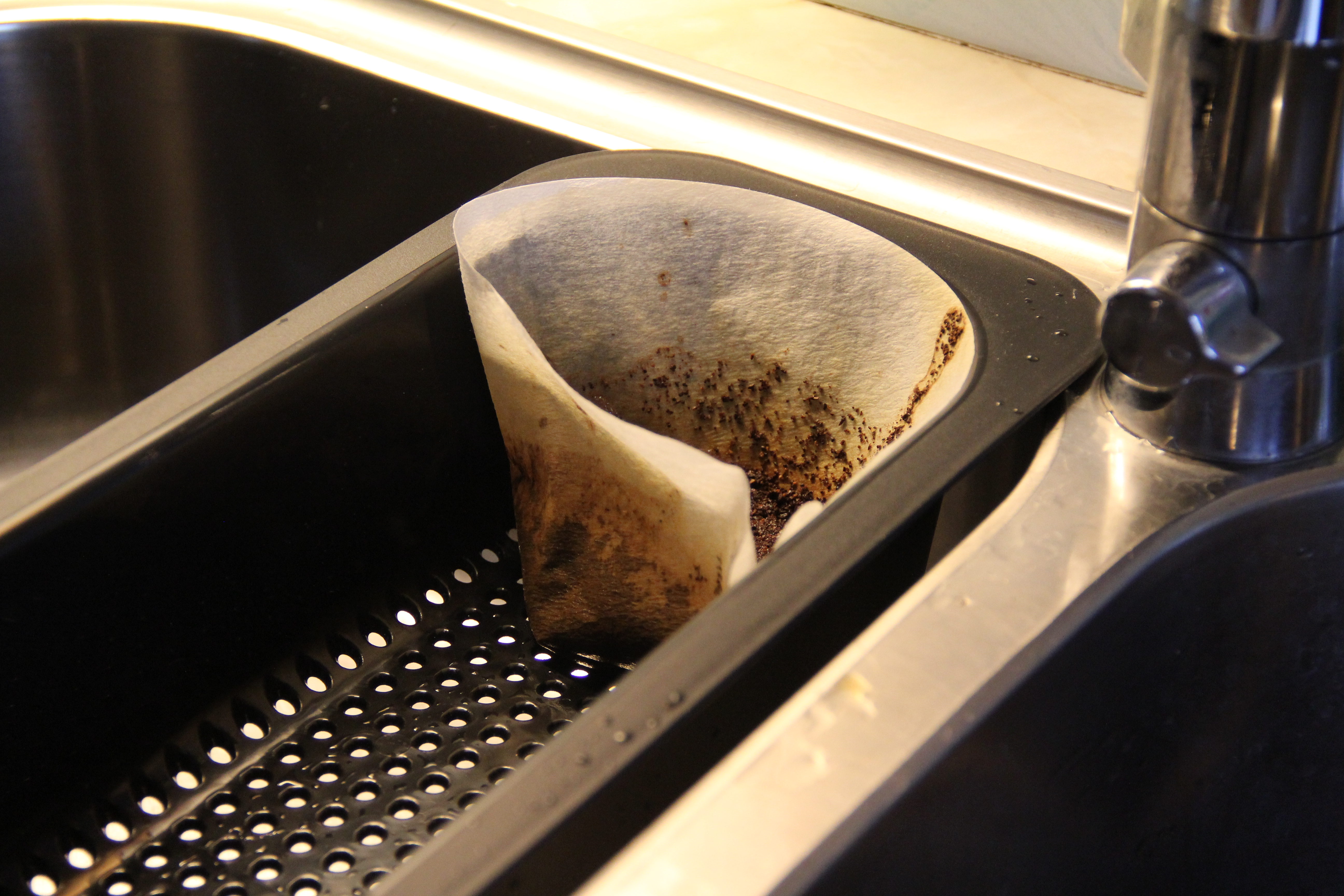 Here’s another idea on the coffee front, in all simplicity. We drink a lot of press coffee here (or whatever you call it where you are!). I have a nylon coffee filter handy that I tip the coffee grinds into afterwards. You can just let it run off into the coffee maker or a cup or something. Dries up quite quickly and is easy to deal with.