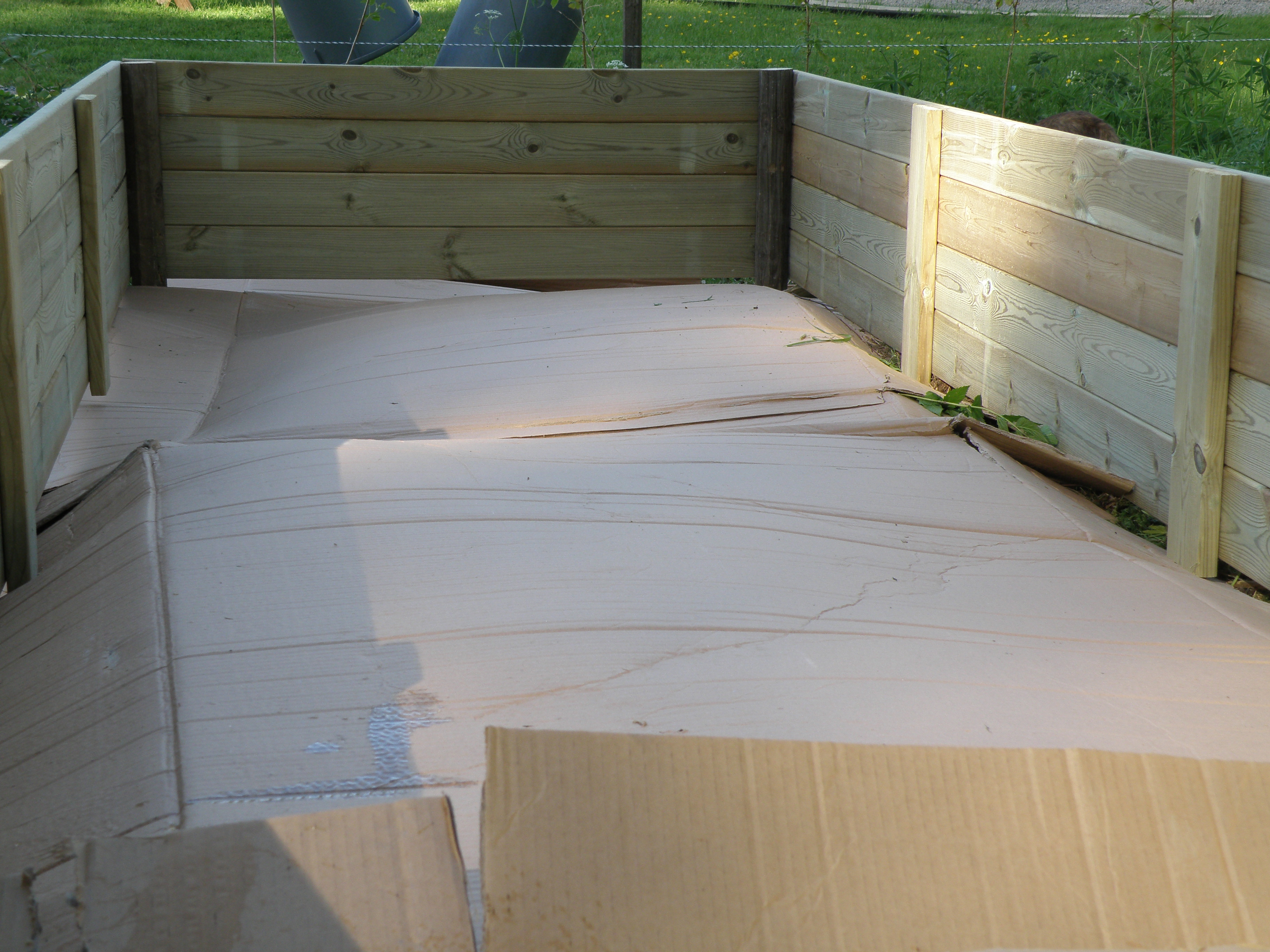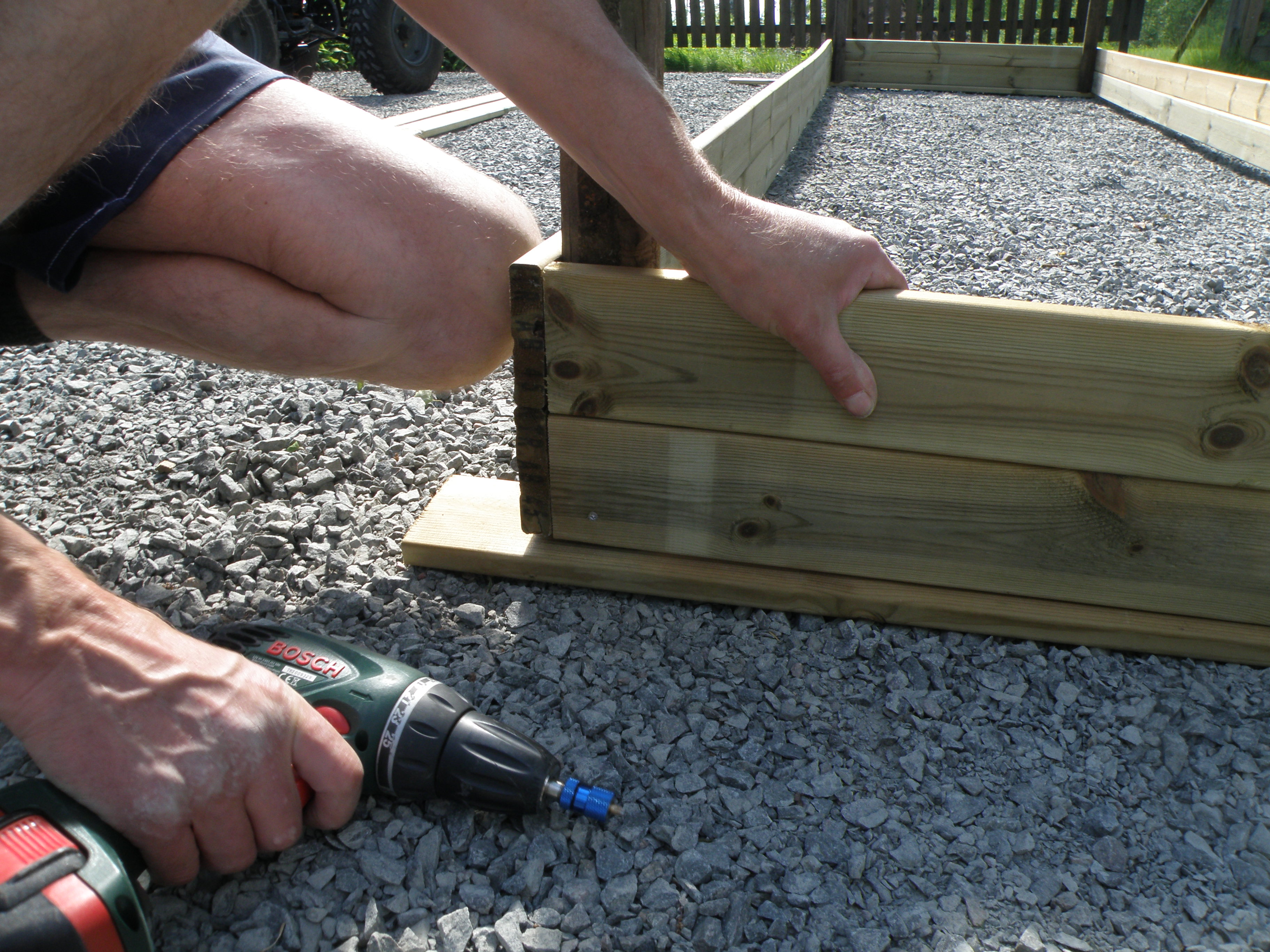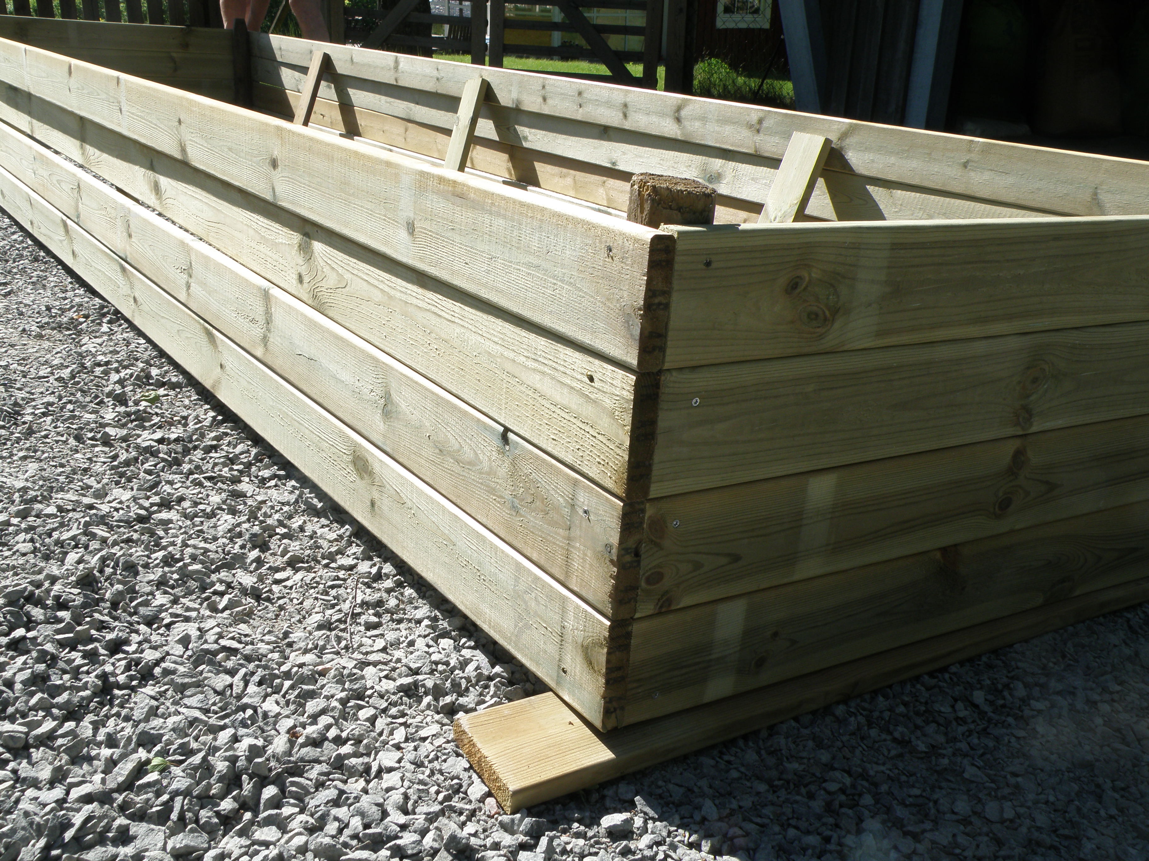 btw we found out it’s easier to build these big boxes on a flat surface (driveway?) upside down then tip them right side up and carry them into place. It’s really hard to get them straight and nice if you build them on site.
