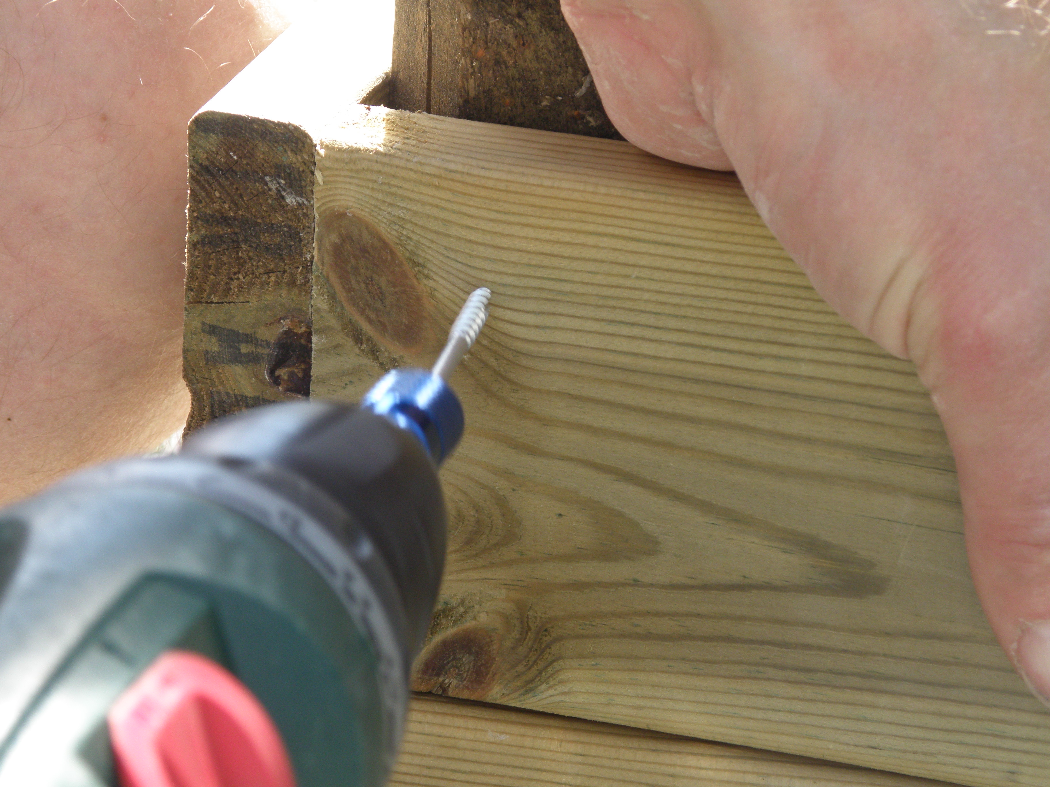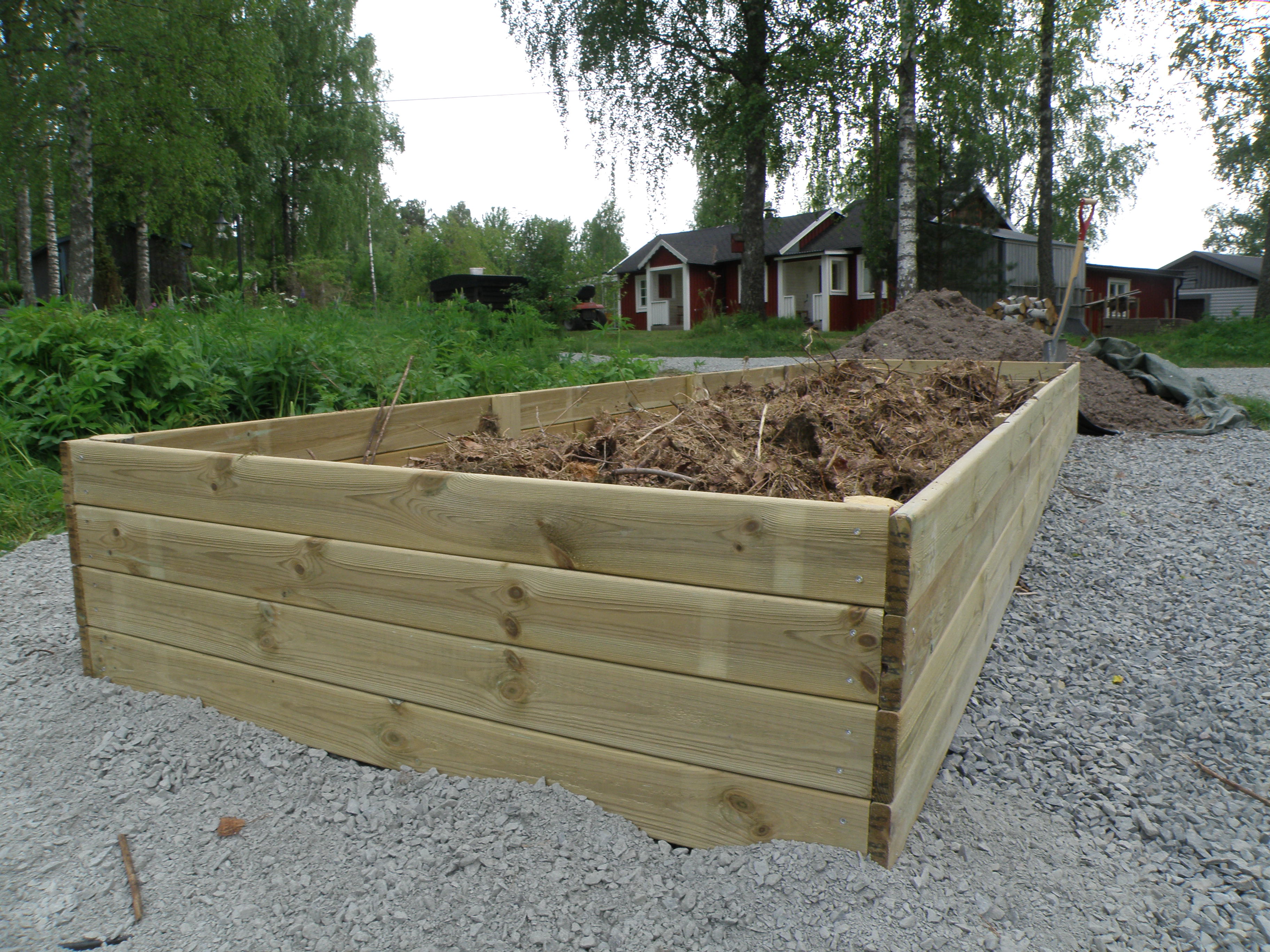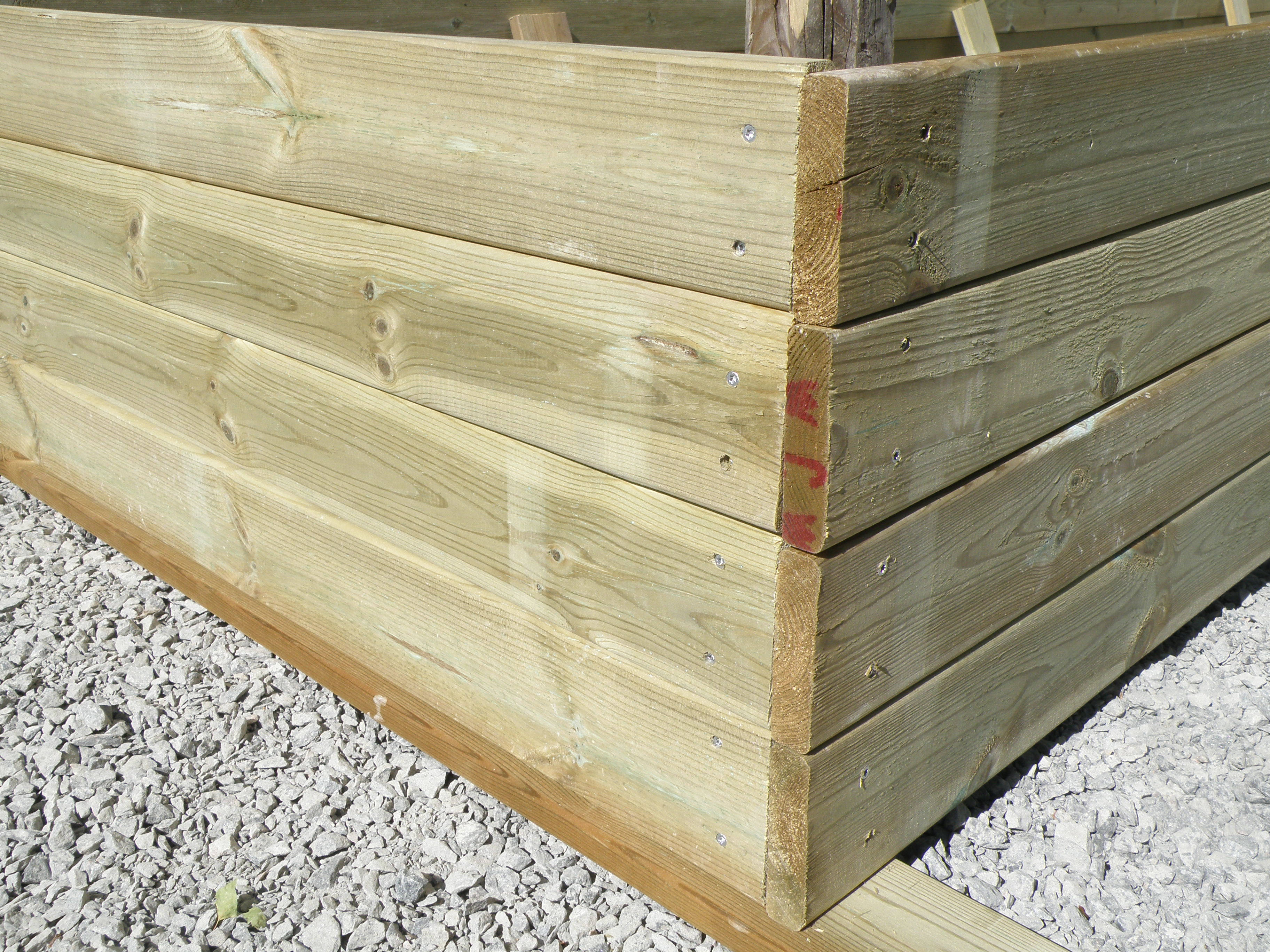 btw we found out it’s easier to build these big boxes on a flat surface (driveway?) upside down then tip them right side up and carry them into place. It’s really hard to get them straight and nice if you build them on site.