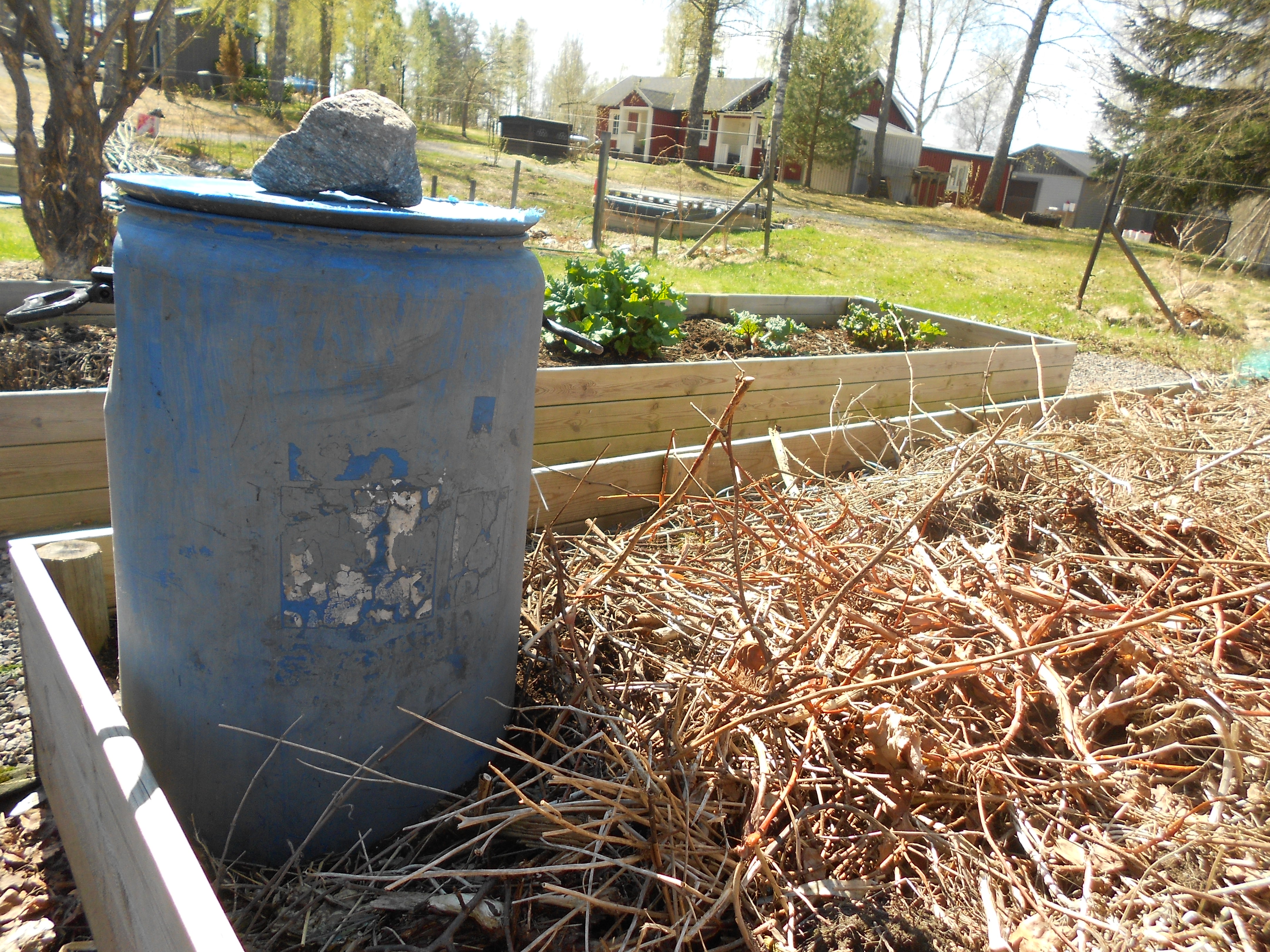 So, yes, it’s an experiment, but having fiddled and fixed with all manner of strange Bokashi experiments over the last years I haven’t got the least doubt this will work just fine. The nice thing is that when it gets boring with the barrel in that spot it’s easy to move elsewhere. A sort of mobile composting unit, quieter than a chicken tractor but the same idea. Perfect if you have clay soil that you can’t get a spade into and so need to go up instead.
